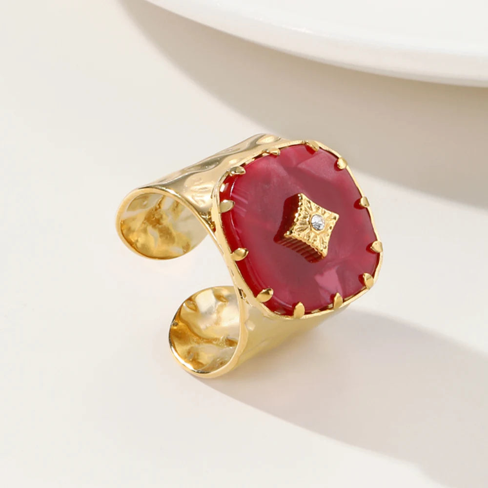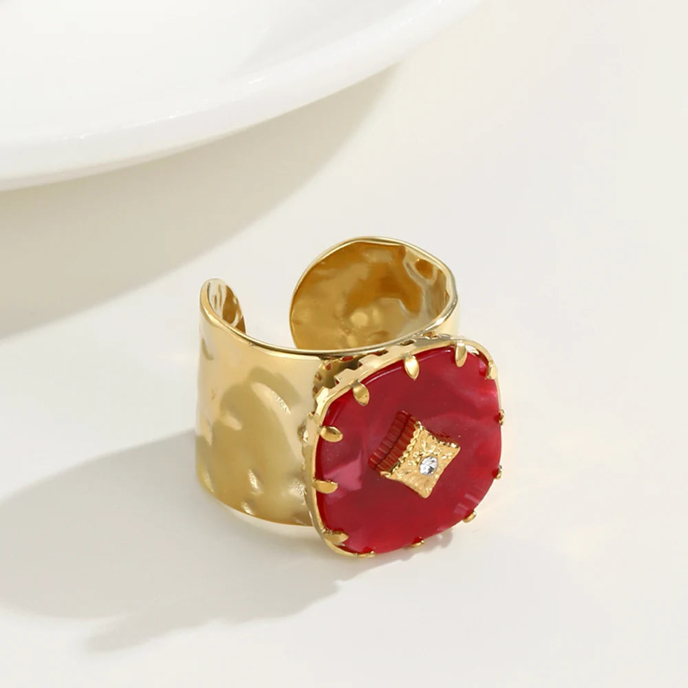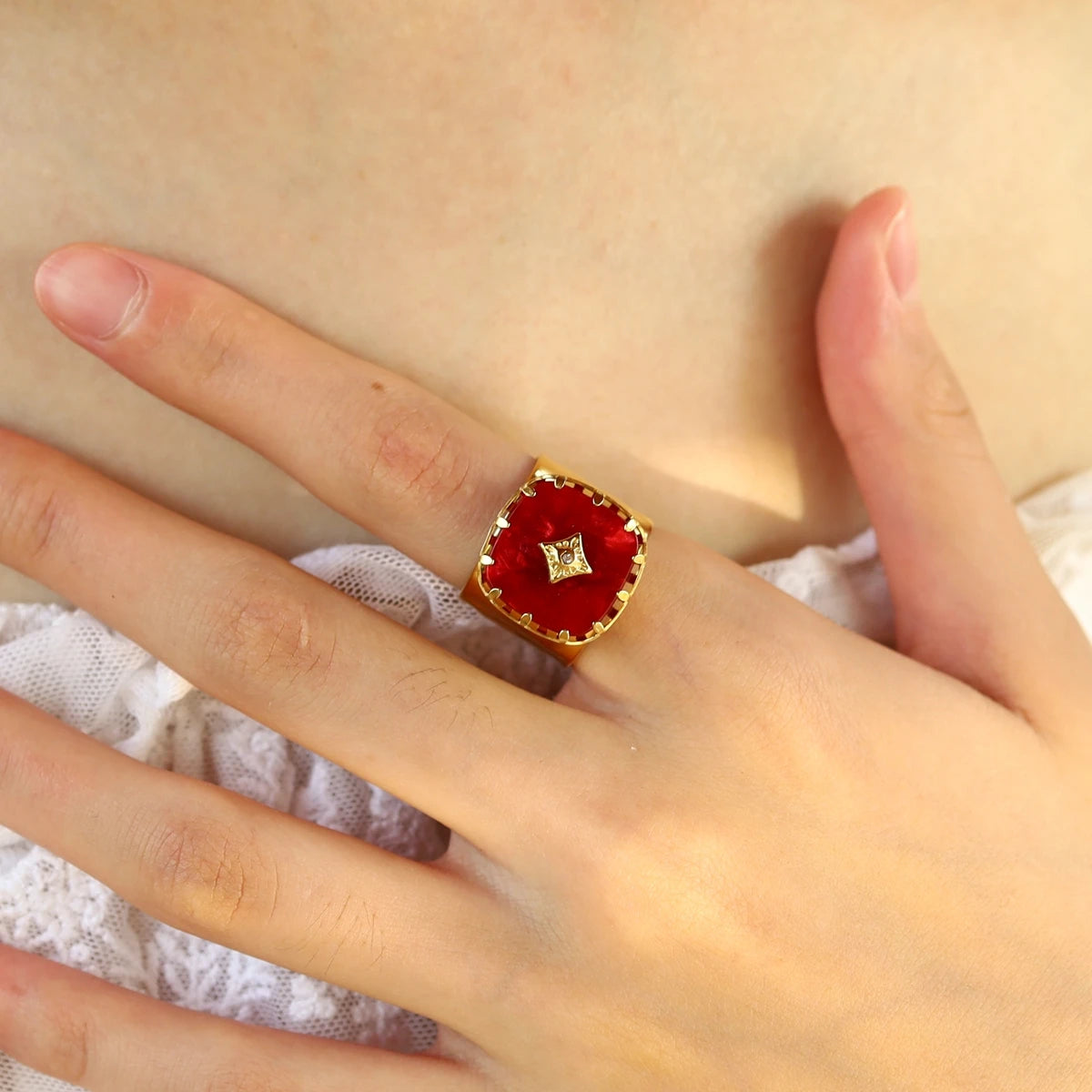 Conquiste o brilho e a elegância com este anel em aço inoxidável 316L, adornado com uma deslumbrante pedra acrílica vermelha. Fabricado pela renomada YA-CHAN com 15 anos de expertise, combina qualidade premium com design geométrico contemporâneo e banho de ouro 18k. Perfeito para casamentos, festas, aniversários e momentos do dia a dia, este anel versátil complementa qualquer look. Aproveite o frete grátis para todo Brasil e parcelamento em até 12x no Mercado Pago. Receba com segurança e suporte humanizado 24h.
