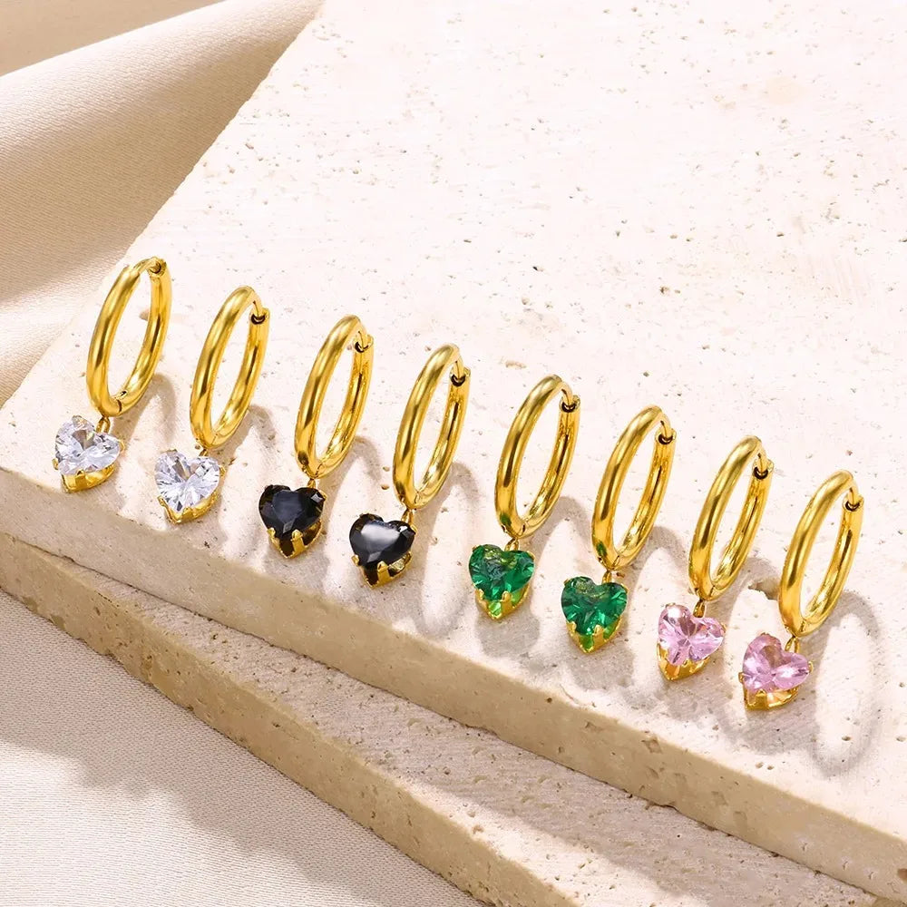 Declare seu amor com estes brincos de coração em zircônia cúbica. Adornados com pedras brilhantes em formato de coração rosa, são confeccionados em aço inoxidável premium com banho de ouro 18K que resiste ao desbotamento. Perfeitos para casamentos, aniversários ou presentes de Natal, entregam brilho sofisticado e charme romântico. Os fechos push-back garantem segurança e conforto durante todo o dia. Uma escolha luxuosa para mulheres que buscam joias que combinam sentimento atemporal com glamour contemporâneo e qualidade duradoura.