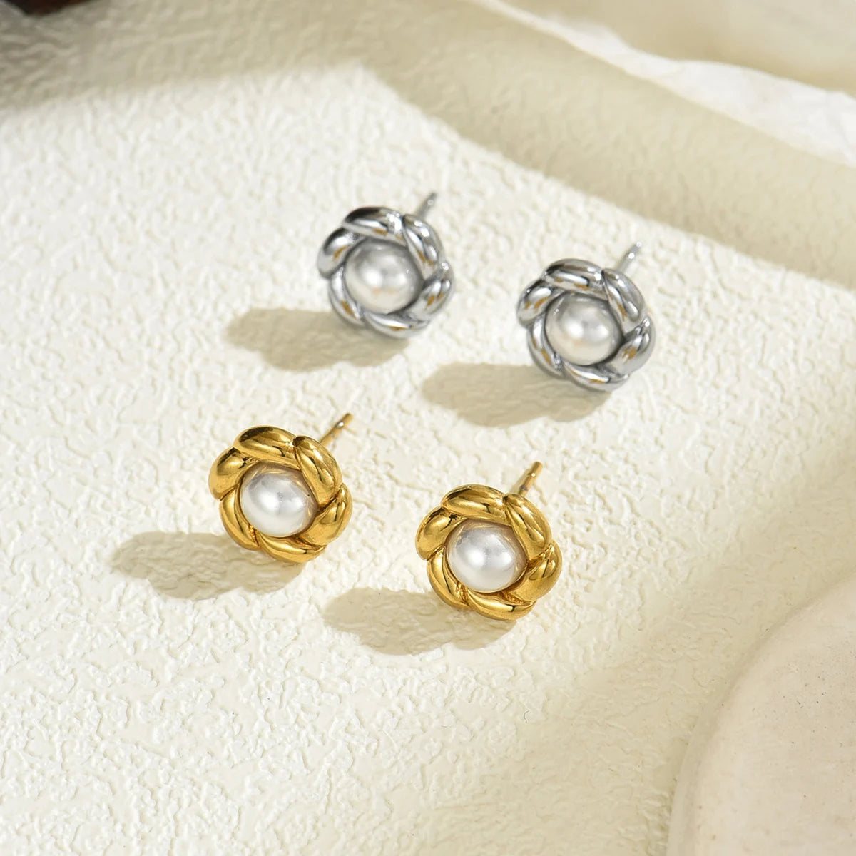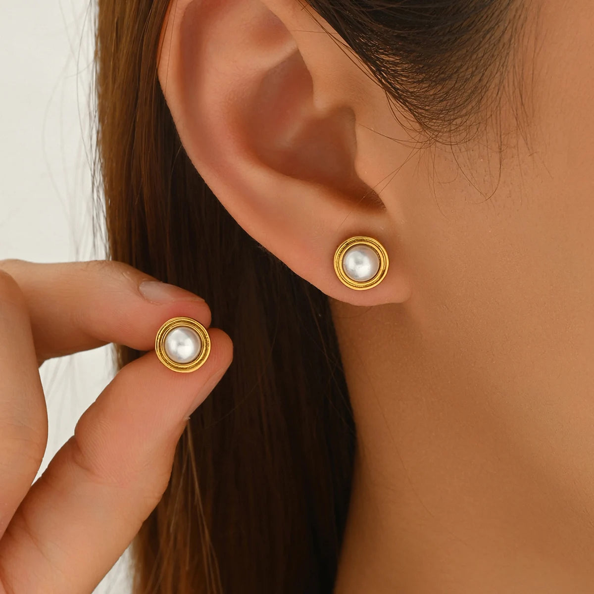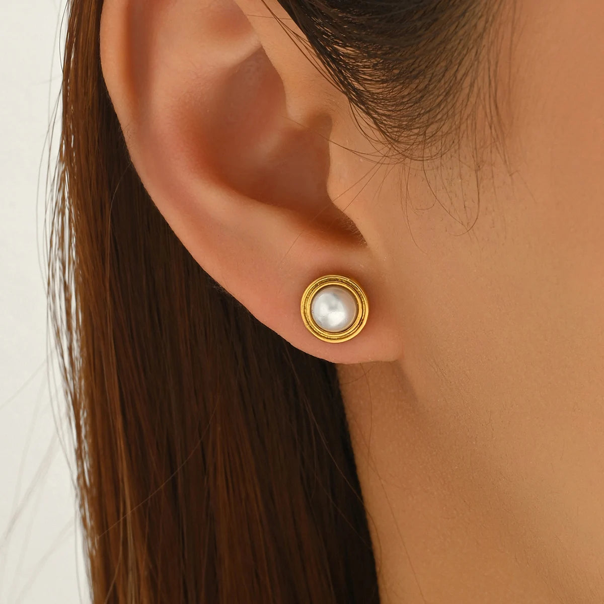 Conquiste corações com estes encantadores brincos de pino em formato de flor com pérola. O design redondo e delicado é confeccionado em aço inoxidável premium com banho de ouro 18K, garantindo brilho duradouro. A estética romântica e fofa os torna perfeitos para o dia a dia ou ocasiões especiais. Resistentes à água, mantêm sua beleza em qualquer situação, enquanto os fechos push-back oferecem segurança e conforto. Um presente significativo para mulheres que valorizam joias vintage com qualidade moderna e elegância discreta.