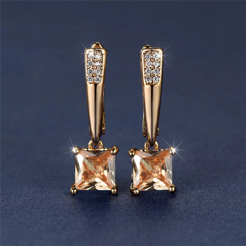 Destaque sua personalidade com estes brincos de zircônia cúbica em design geométrico quadrado, que combinam sofisticação antique com tendência contemporânea. O acabamento em ouro champagne confere elegância refinada, perfeito para festas, eventos especiais ou uso cotidiano sofisticado. Confeccionados com precisão e atenção aos detalhes, oferecem o brilho duradouro de pedras de qualidade superior sem comprometer o conforto. Leves e versáteis, estas peças transformam qualquer look em uma declaração de estilo expert, consolidando-se como investimento inteligente em joalharia de qualidade que transcende modismos.