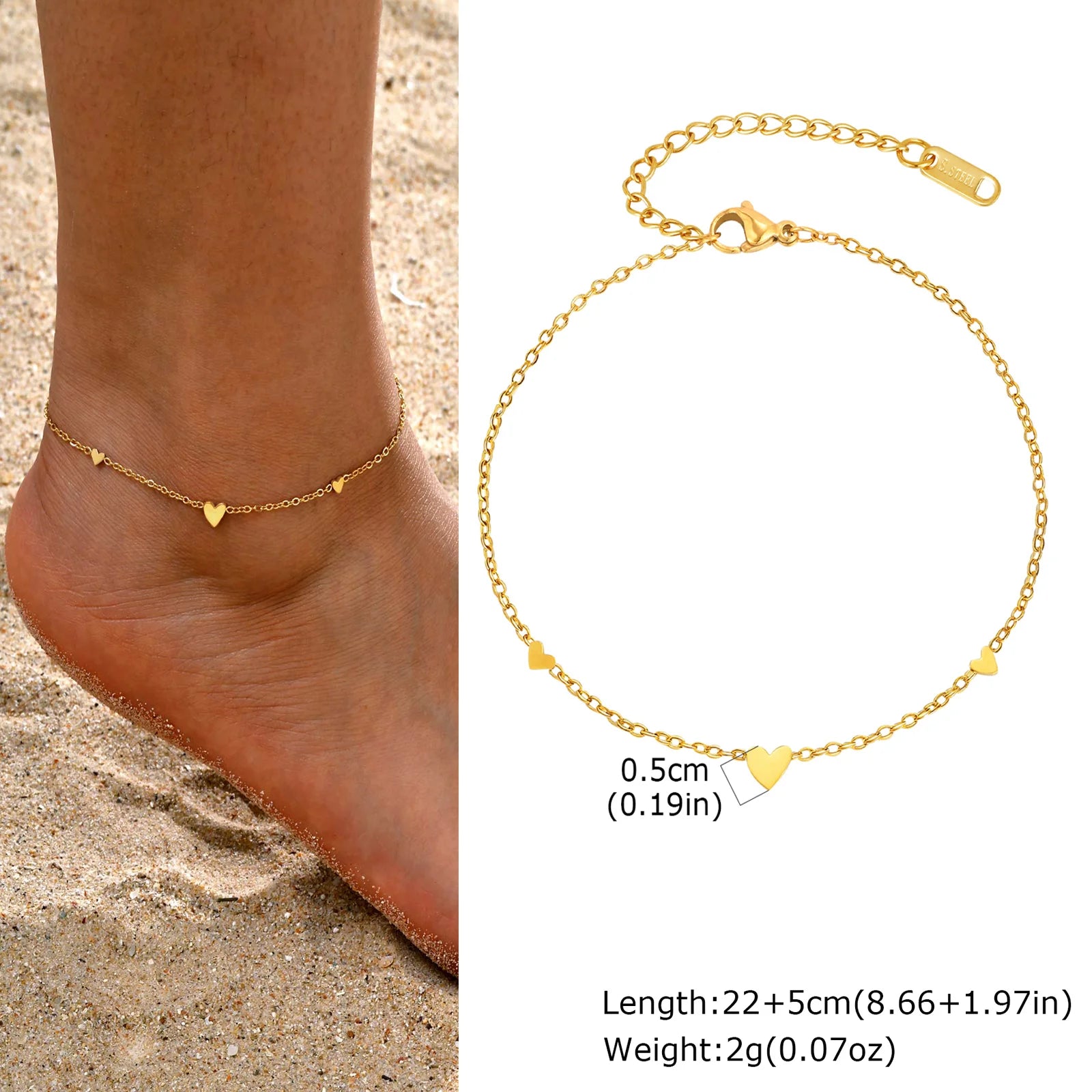 Tornozeleira feminina em aço inoxidável com banho de ouro, apresentando um delicado pendente em forma de coração. Combina sofisticação e leveza, caracterizando-se como peça de luxo acessível. Sua construção em aço garante resistência e durabilidade, mantendo o brilho do revestimento dourado ao longo do tempo. Ideal como presente para ocasiões especiais ou para complementar looks festivos, esta tornozeleira oferece elegância discreta no pé, refletindo tendências contemporâneas de joias minimalistas e refinadas.